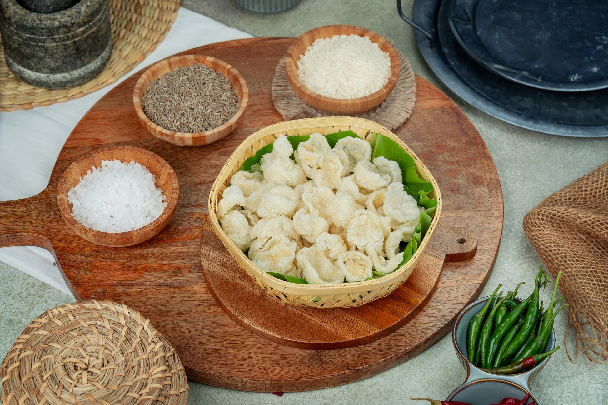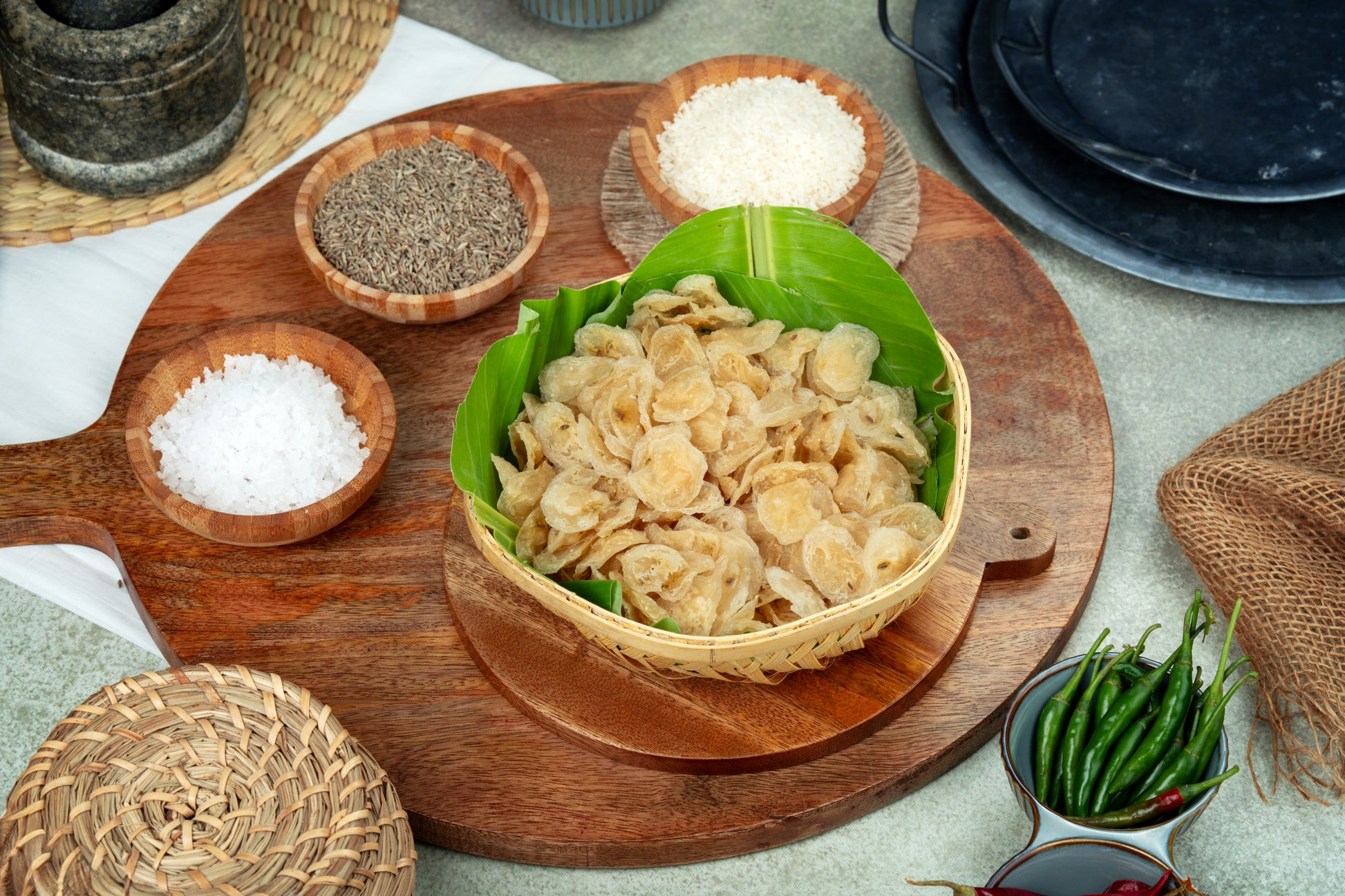 Crispy Rice Sandige is a traditional South Indian sun-dried snack made from rice flour, cumin, and mild spices. Light, crunchy, and airy in texture, it’s deep-fried to perfection for a golden crisp. Typically enjoyed as a side with meals or a teatime treat, it captures the authentic homemade taste of classic Indian “sandige” with every bite.